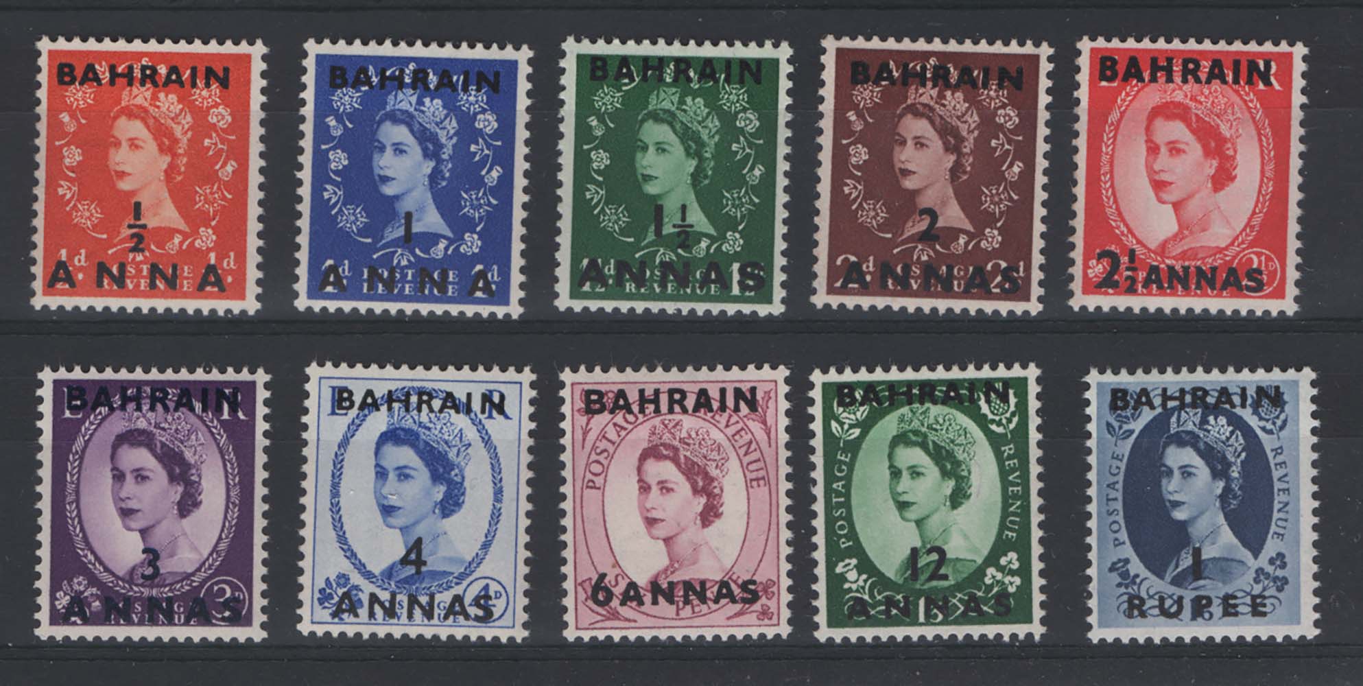 Bahrain 1952 set sg80-9 (6a crease) um c£29 ‡ [ref 288/52 sa/9c0973]