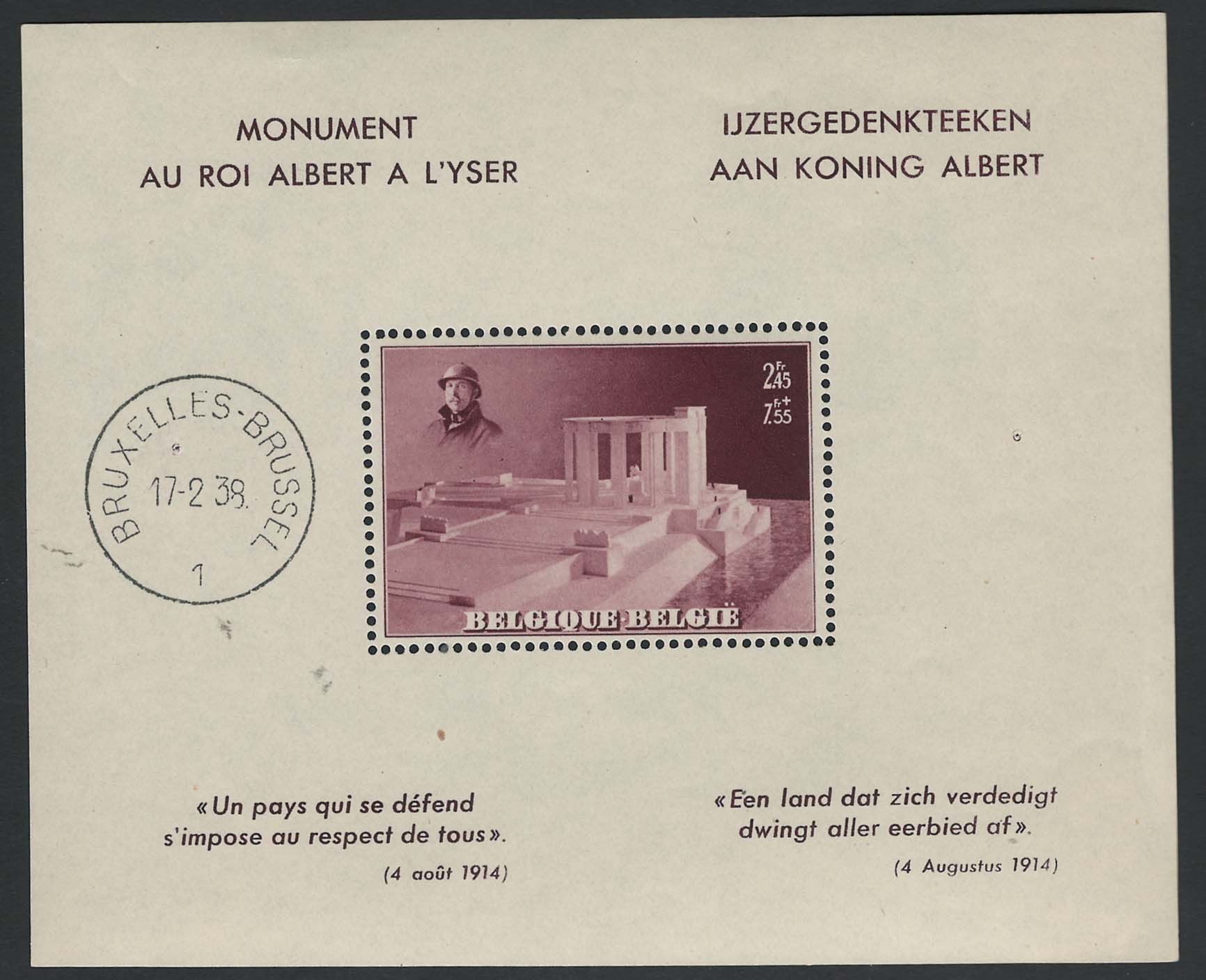 Belgium 1938 King Albert m/sheet sg809 fine used cat £23 [ref ebay/1173-a18 5m3085]