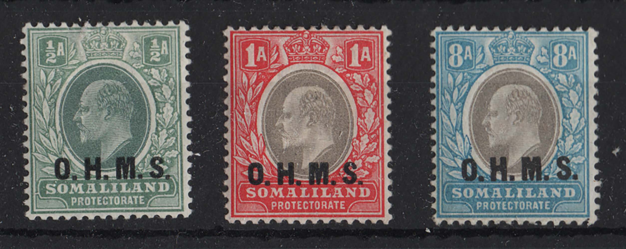 British Somalia 1904 OHMS ½a, 1a, 8a f mint sgO10, 11, 13 c£79 [ref 287bb155/sae/9u0113]