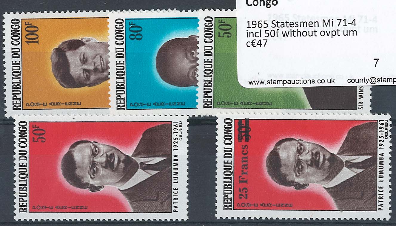 Congo 1965 Statesmen Mi71-4 incl 50f without ovpt unmounted mint c€47 4s2417 273sa Africa [ref: 292/100 saD/4s2417]