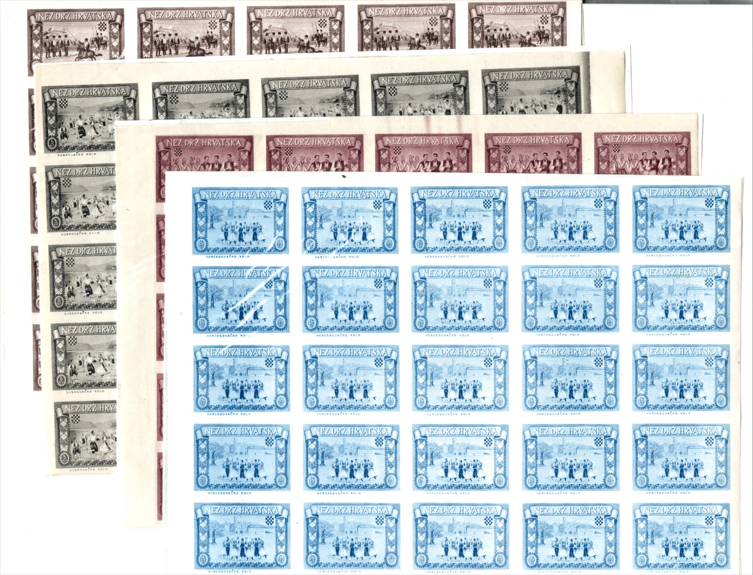 Croatia 1940 Nezavisna Hrvatska unissued IMPERF set of 4 in unmounted mint sheets of 25 [ref: 292/111 lD/9i0440]