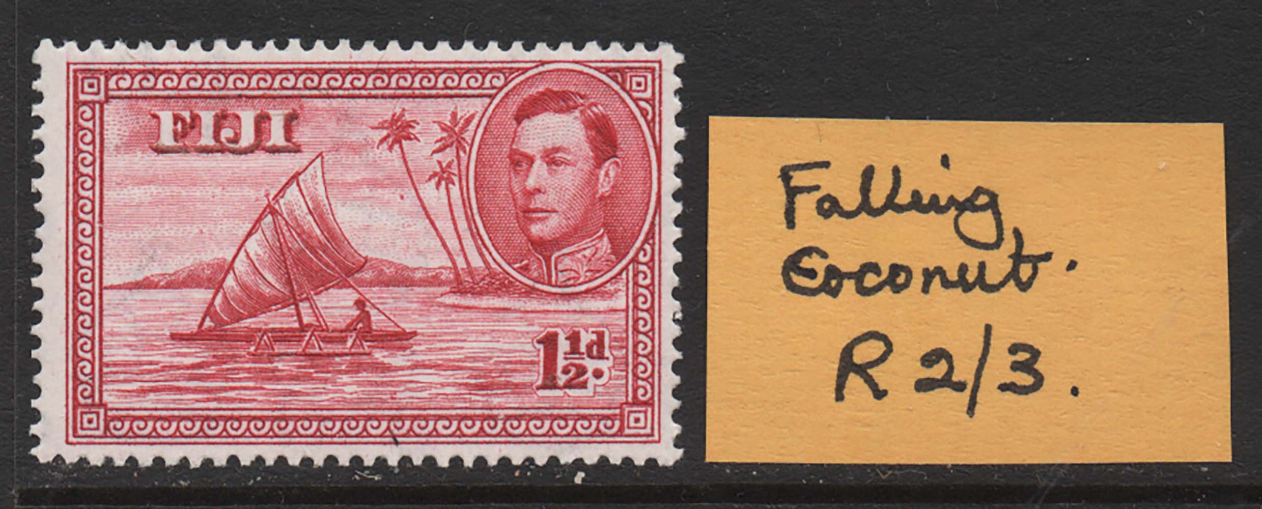 Fiji 1938 1½d die 2 deep carmine perf 13½ sg252a r2/3 falling coconut variety um [ref 288/103 sa/ac0071]
