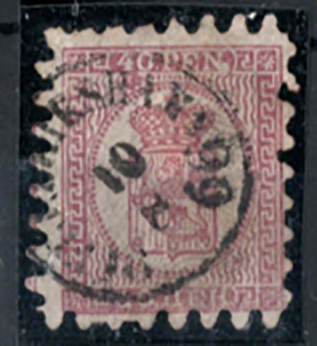 Finland 1866 40p pink sg43, white blob after PEN variety Facit u8 pos41 (= +400kr), fine used cds 3 dulled perfs [ref: 292/138 saD/6s0275]