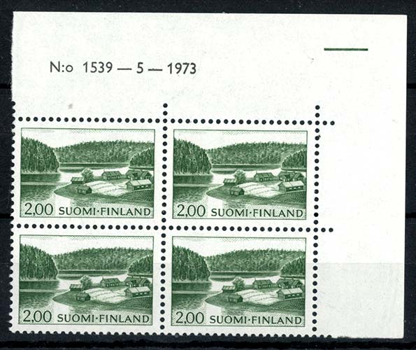 Finland 1963 2m green use by Lake unmounted mint corner block of 4 sg675 cat £92 [ref: 292/144 saD/8y0589]
