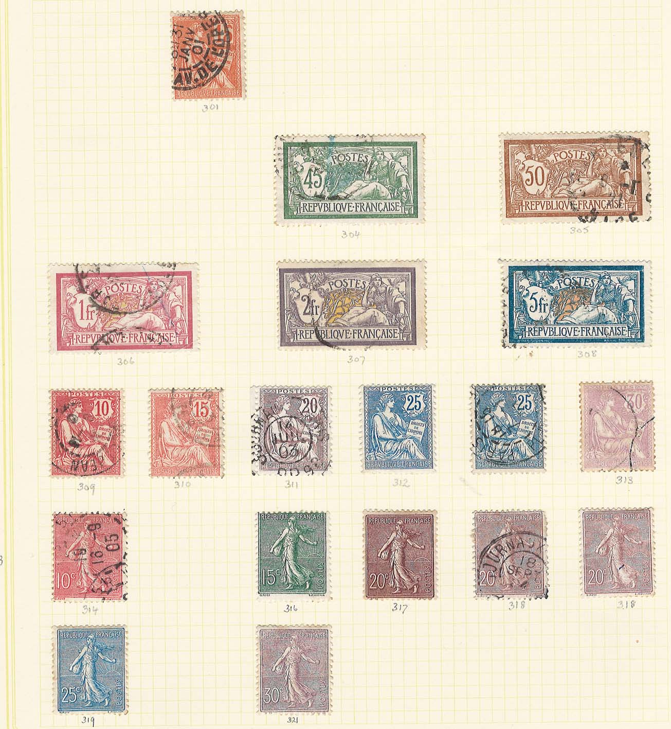 #0165 France 1900s m&u incl Mouchon 25c fine mint Merson 2f fine used Sower with Sun
