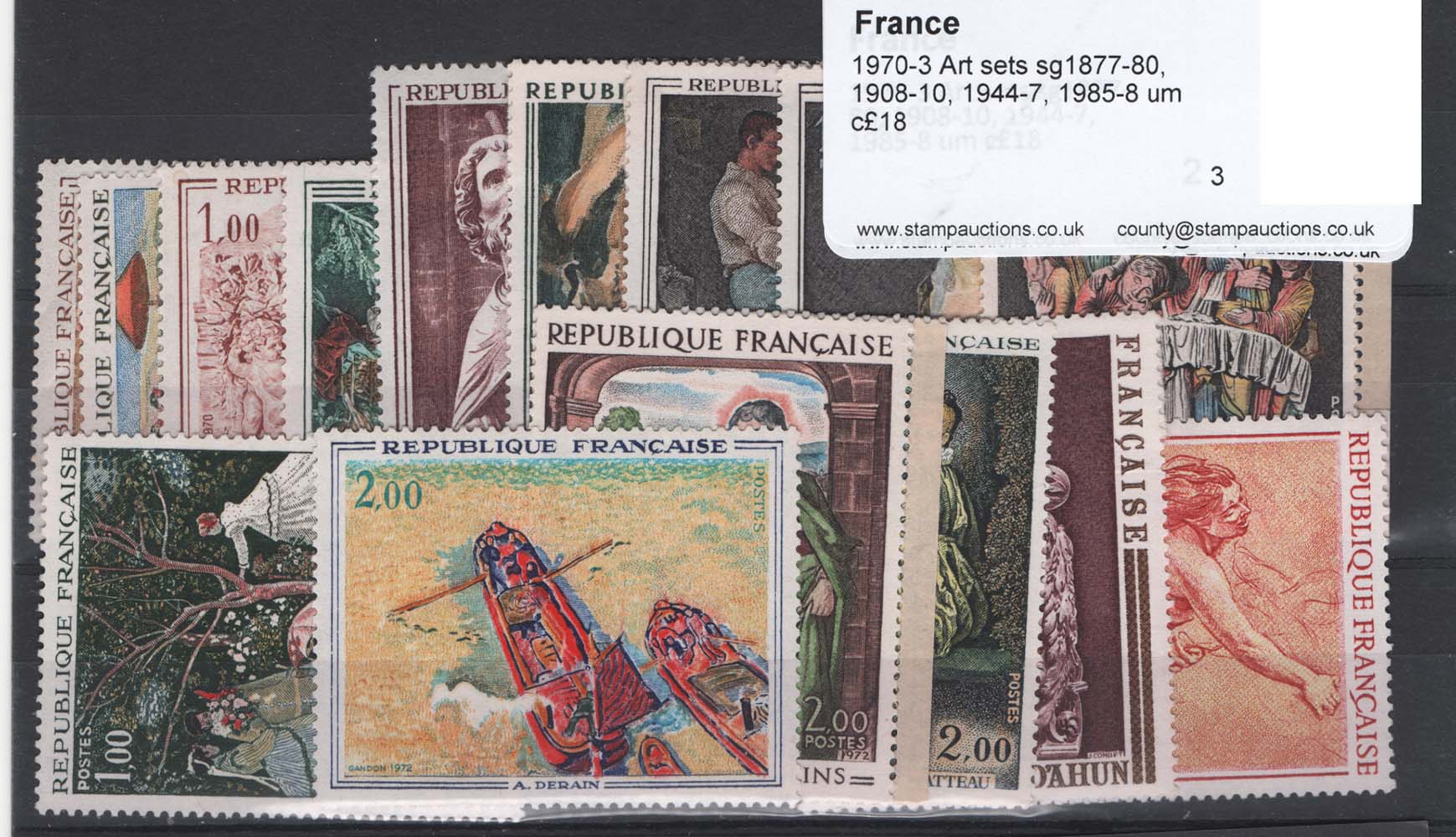 France 1970-3 Art sets sg1877-80, 1908-10, 1944-7, 1985-8 um c£18