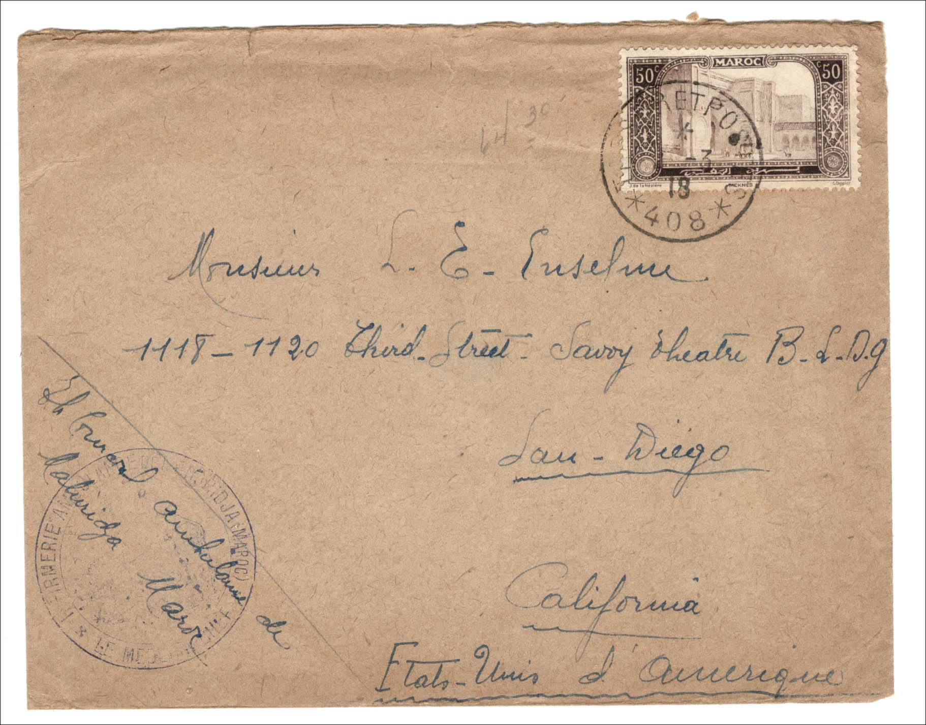 French Morocco 1918 Neat cover to USA franked 50c Infirmary Ambulance cachet