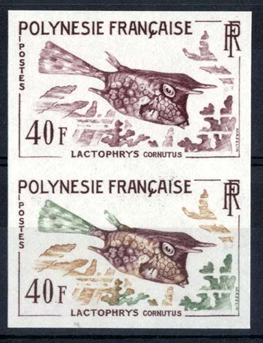 French Polynesia 1962 Fish 40f imperf pair of colour trials um, as sg27
