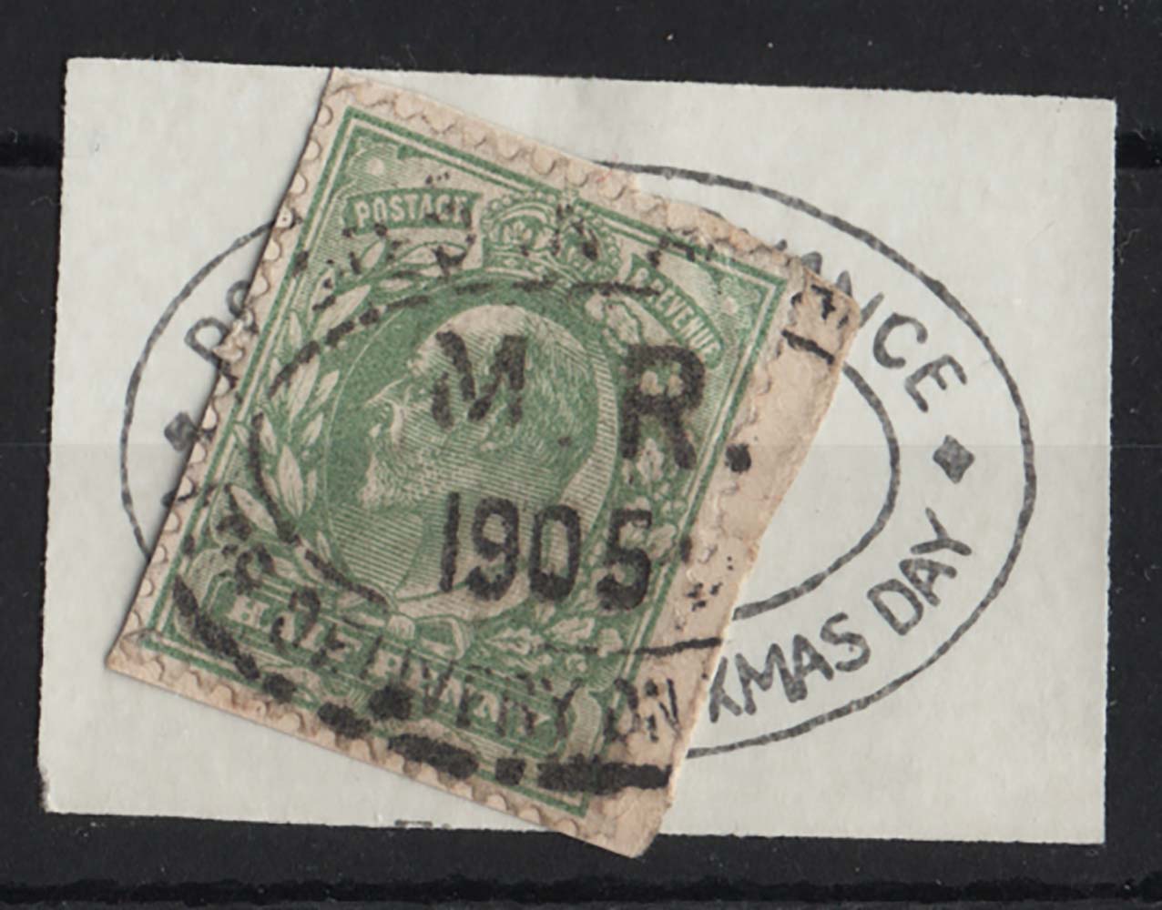 GB 1902 ½d Posted in Advance for delivery on Christmas Day part Manchester MR/1905 fu tied piece [ref 287bb826/sa/9q0681]