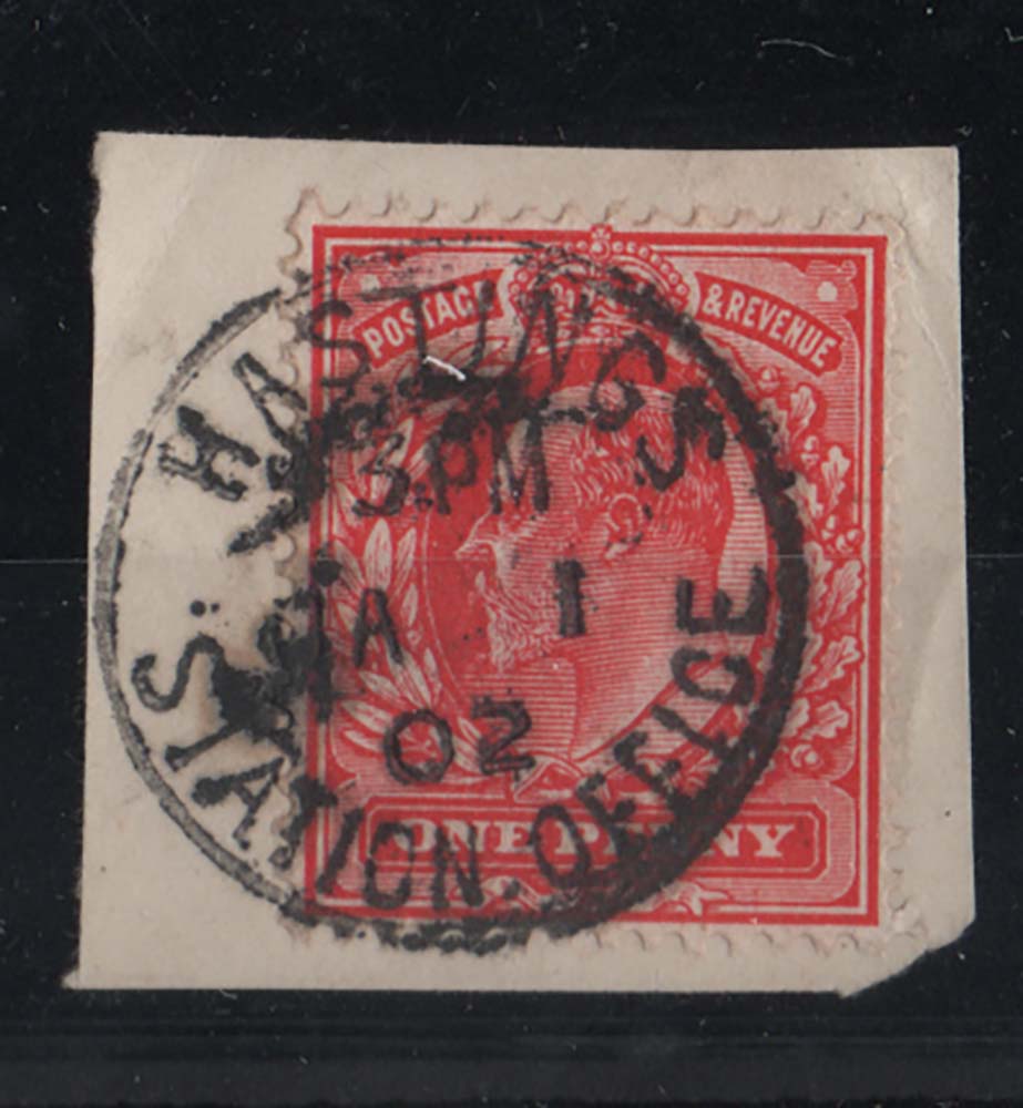 GB 1902 1d fu with First Day 1JA02 Hastings Station Office cds sg219