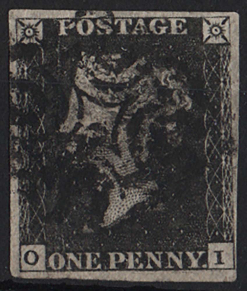 GB 1840 1d black plate 5 OI fu 4 good-large margins, hint of pressed crease, neat black MX [ref 287bb417/sae/9s0397]