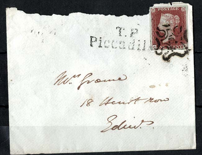 GB 1841 1d red fu, clear ‘5 in MX’, 4 large margins tied large part cover c£180+