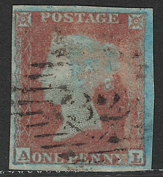 GB 1841 1d red lettered AL used, pale shade with extensive dry print at right, large margins, very blued paper [ref ebay/1161-a12 e3427] 291/#137
