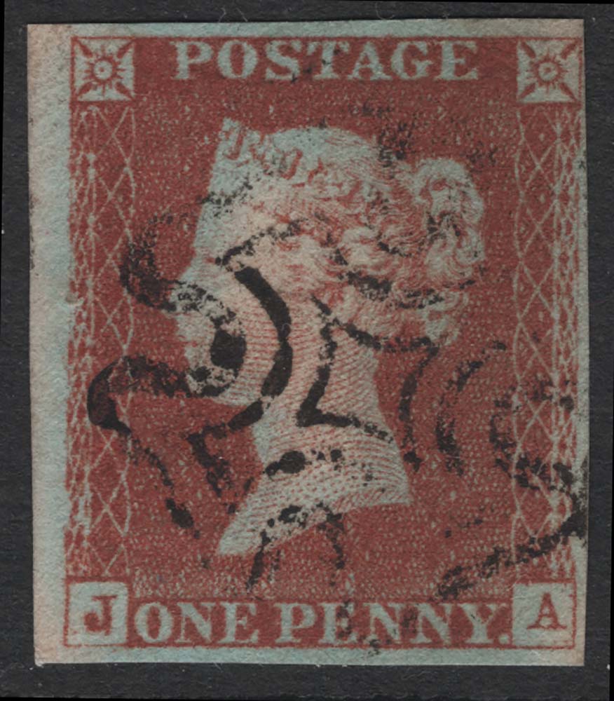 GB 1841 1d red plate 19 JA fine used, 4 close-good margins, doubled letter J cat £80 [ref 288/l/ac0719] Victoria Line-Engraved Issues