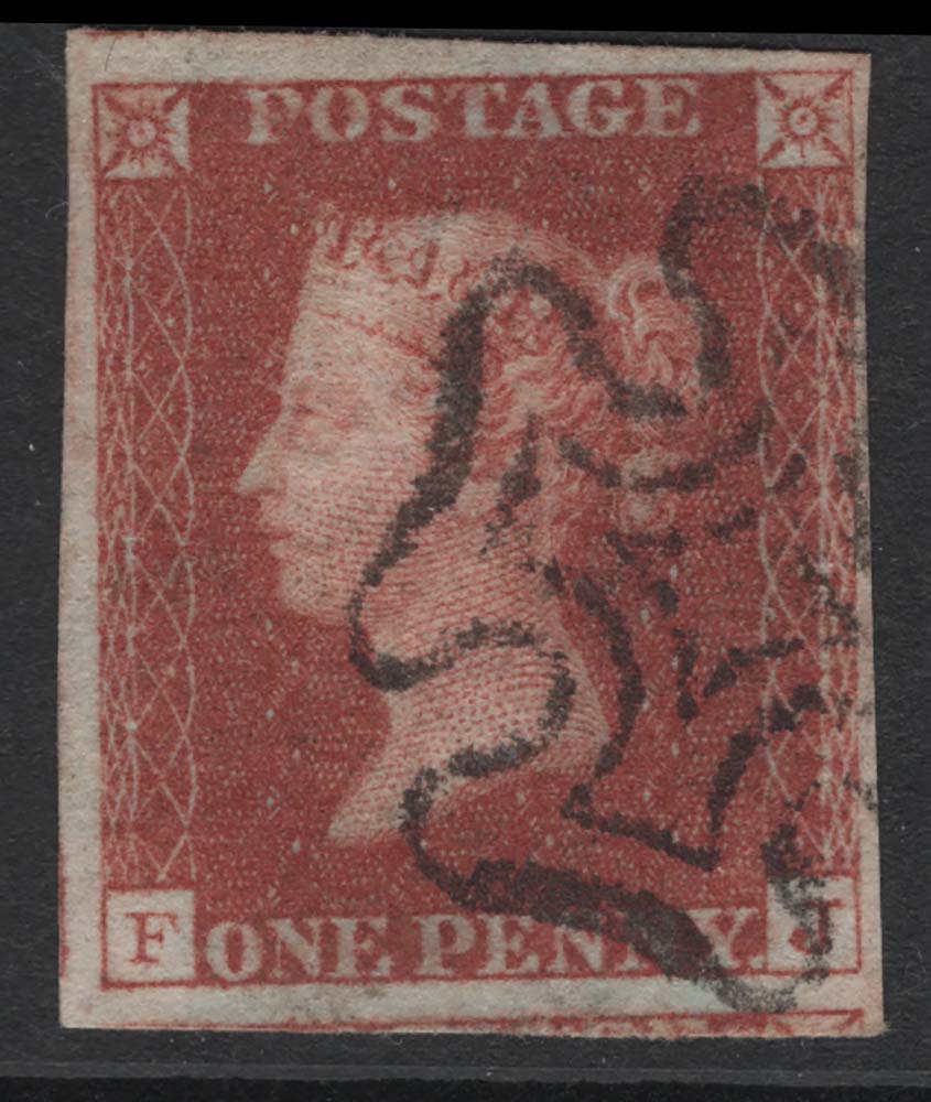 GB 1841 1d red plate 20 FJ fine used, 4 good margins just touched top right, dot in SE square cat £60 [ref 288/l/ac0729] Victoria Line-Engraved Issues