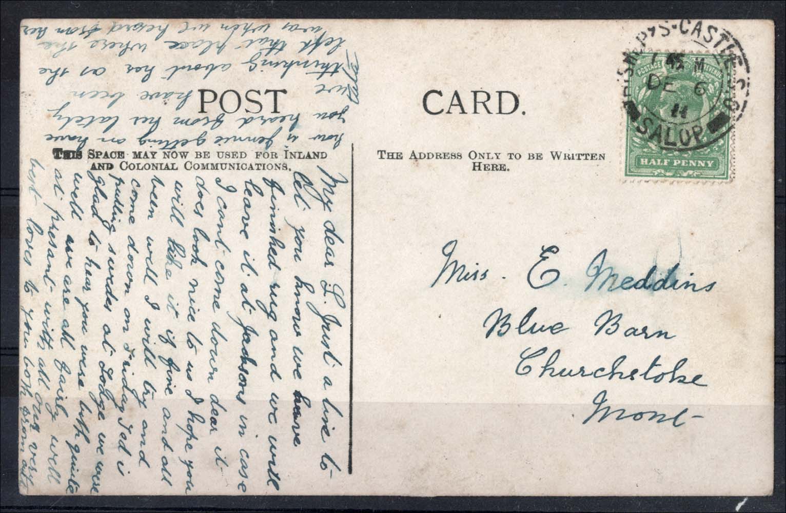 GB 1911 KEVII ½d perf 14 deep dull green blotchy print vfu cds on RP postcard sg267var [ref 287bb871/sae/9k0333]