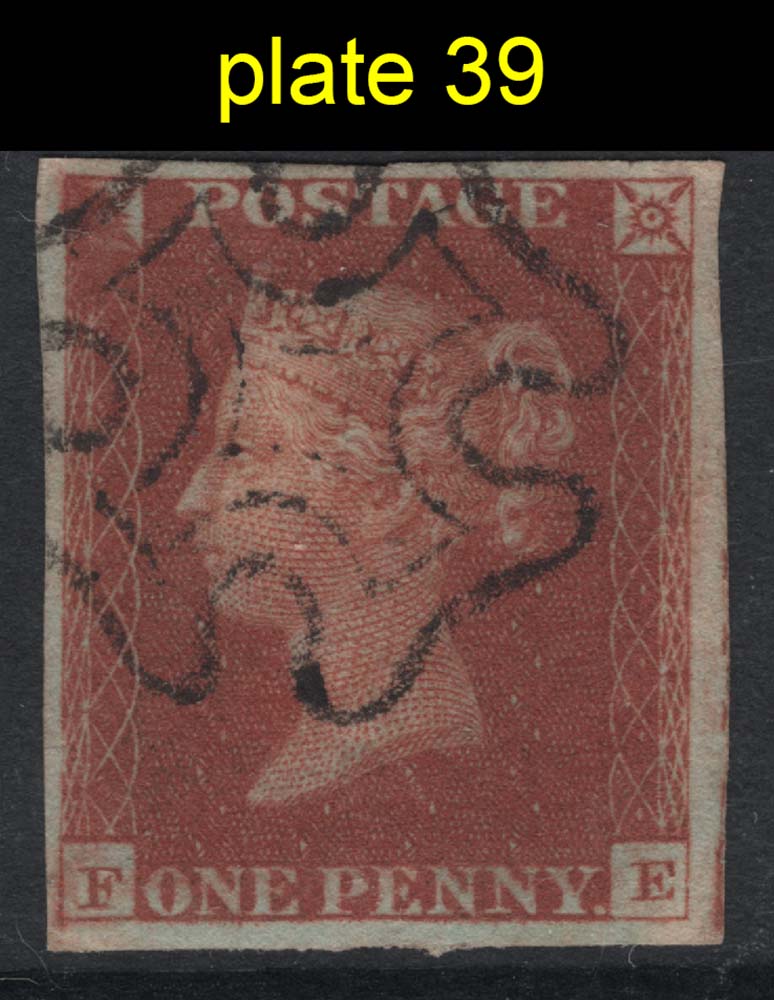 GB 1841 1d red plate 39 FE basal shift very fine used 4 good-large margins, crisp MX cat £100 with MX [ref 288/sa/ac0363] Victoria Line-Engraved Issues