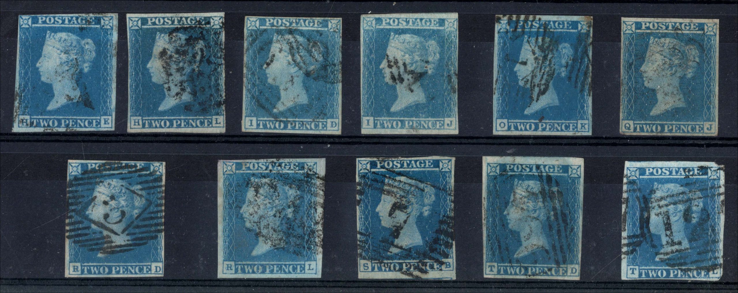 GB 1841 2d blue plate 3, fu good-large margins HE, HL, IJ, OK, RD, RL, SB, TD or TL, say which