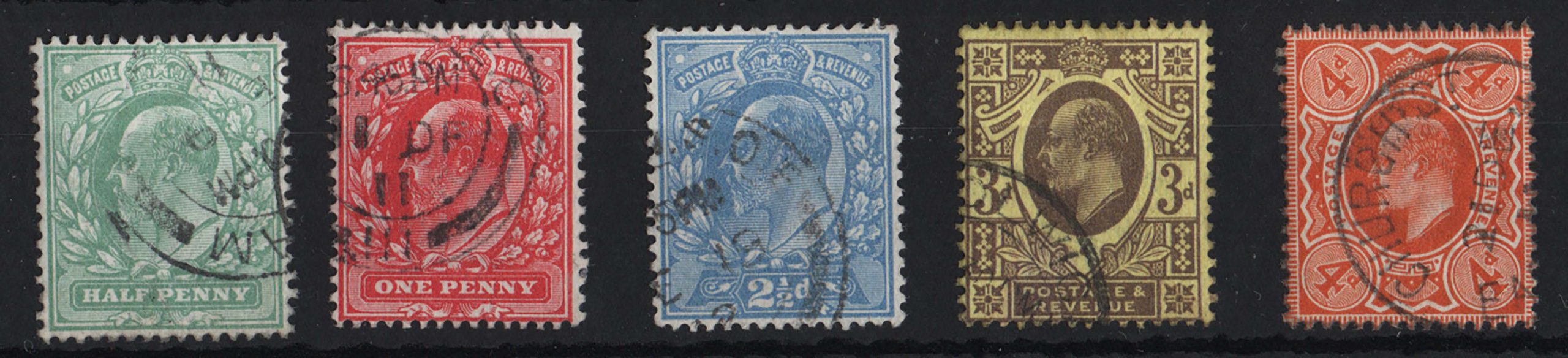 GB 1911 ½d – 4d perf 15×14 set of 5 sg279-86 fu cds [ref 287bb885/sa/9w0111]