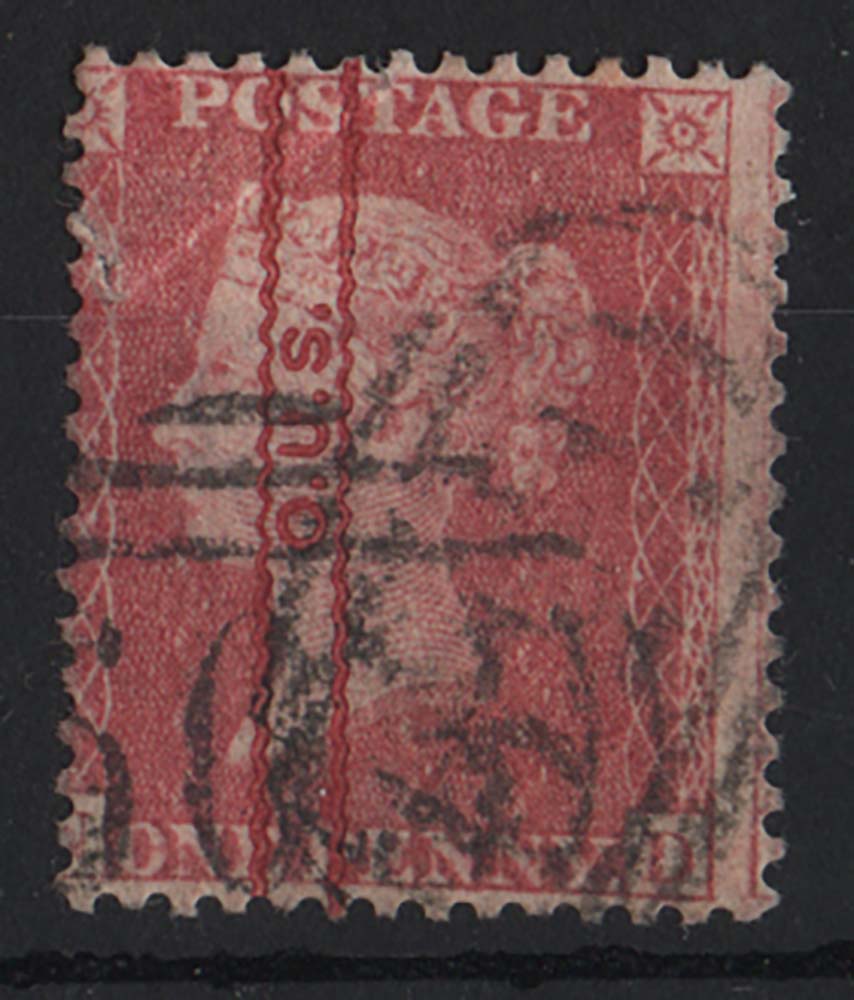 GB 1854 1d red LC14 with OUS ovpt in red fu [ref 287bb504/sae/9m0207]