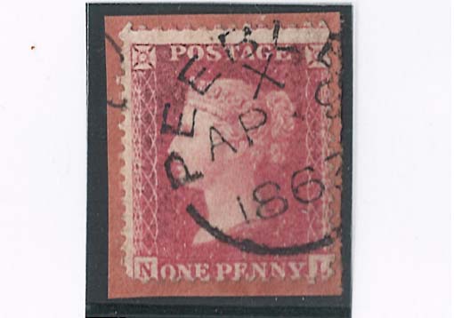 GB 1854 1d red sg40 plate 48 ‘NL’ fine used Peebles 1863 cds tied piece, attractive
