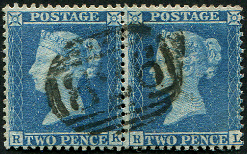 GB 1854 2d blue sg34 plate 5 RK-RL pair single numeral contrary to regulations 826 Usk numeral