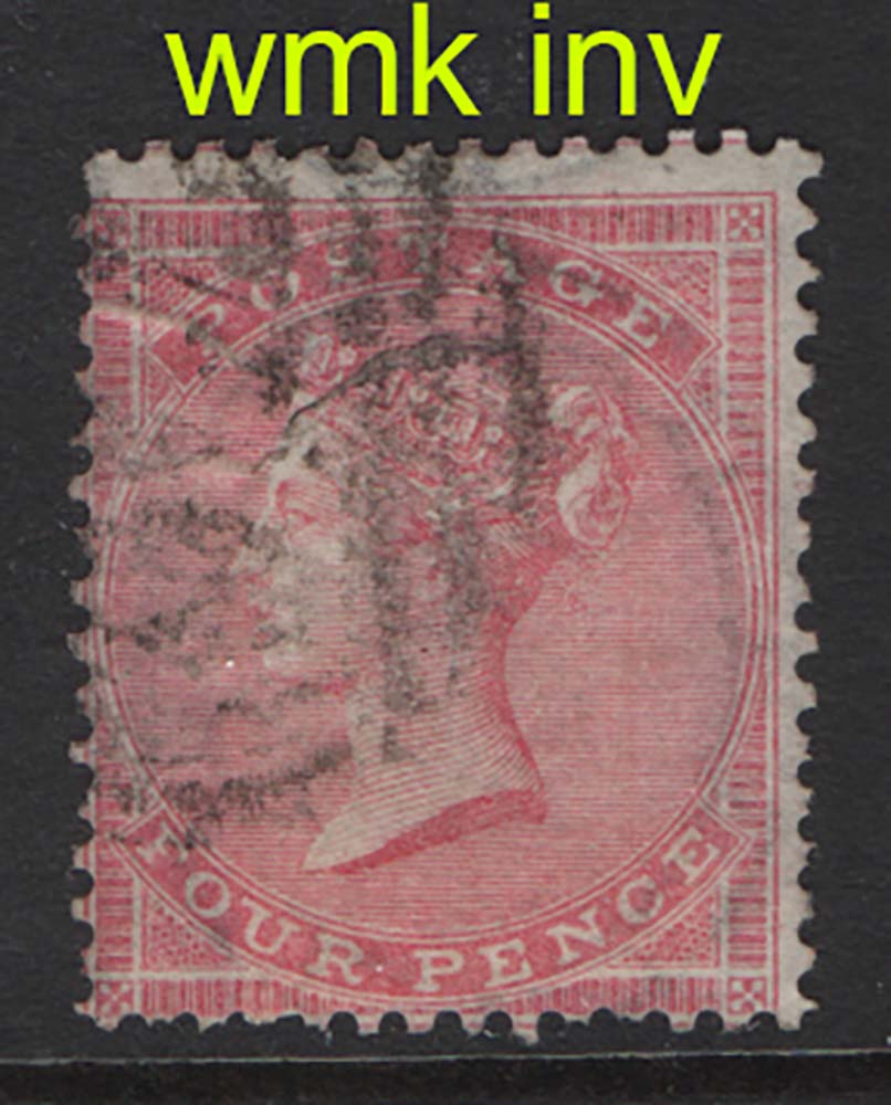 GB 1855 4d rose, watermark large garter inverted very fine used sg66wi cat £400 [ref 288/sa/ac0293] Victoria Surface-Printed Issues