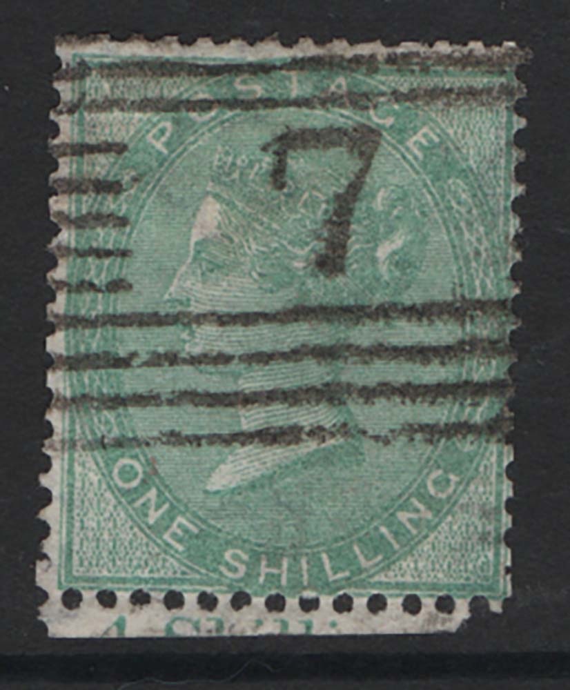 GB 1856 1s green sg72 fu, small part marginal inscription c£350 [ref 286145/sa/aa0075]