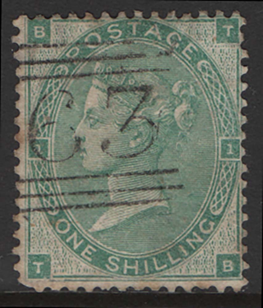 GB 1862 1s green vgu, light cancel, short perf sg90 cat £300 [ref 288/sa/ac0761] Victoria Surface-Printed Issues