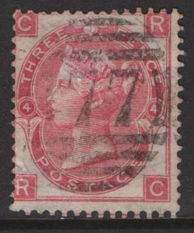 GB 1865 3d rose plate 4 watermark emblems sg92 minor corner wrinkle otherwise very fine used cat £250 [ref 288/sa/ac0760] Victoria Surface-Printed Issues