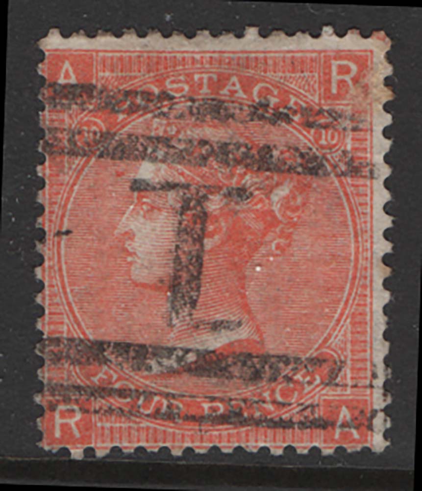 GB 1865 4d dull vermilion plate 10 fu sg94 c£150