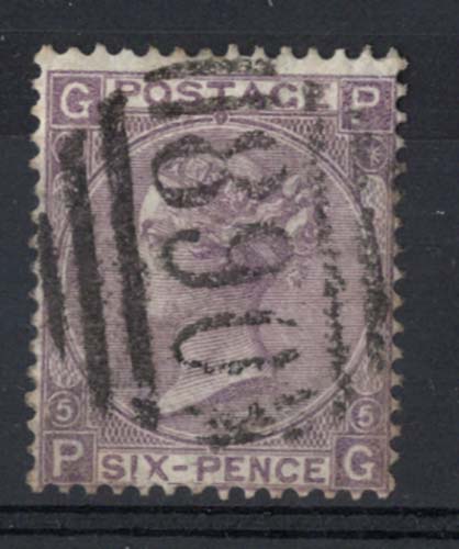 GB 1865 6d emblems plate 5 fu sg97 c£140 [ref 287bb609/sa/8u0541]