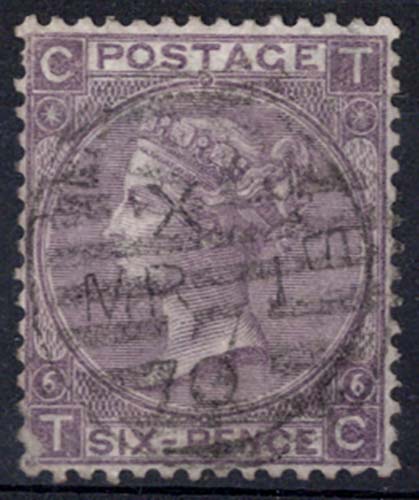 GB 1865 6d lilac plate 6 wmk emblems sg97 vgu, small surface rub, white spot of left ‘6’ variety c£250+