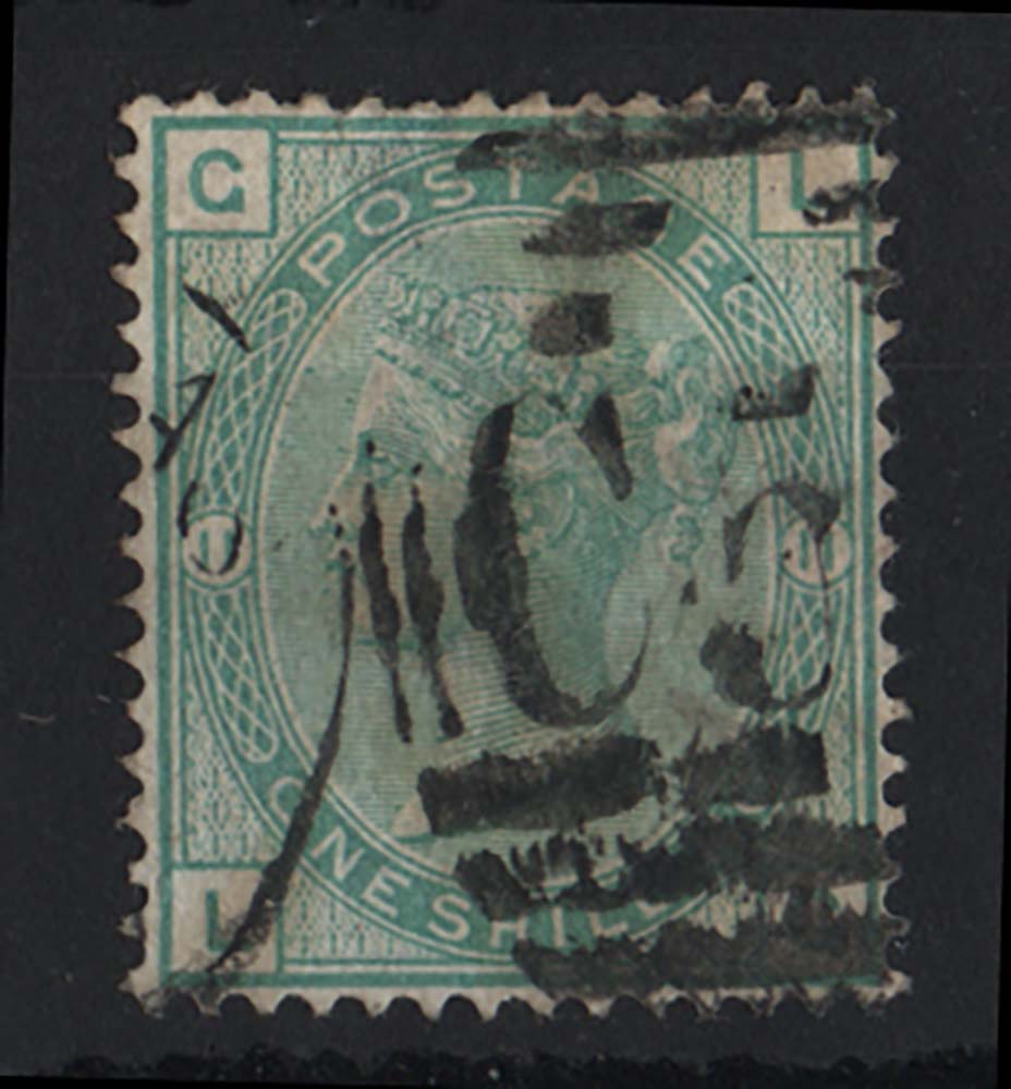 GB 1873 1s green plate 11 gu sg150 c£175 [ref 287bb701/sa/9y0205]