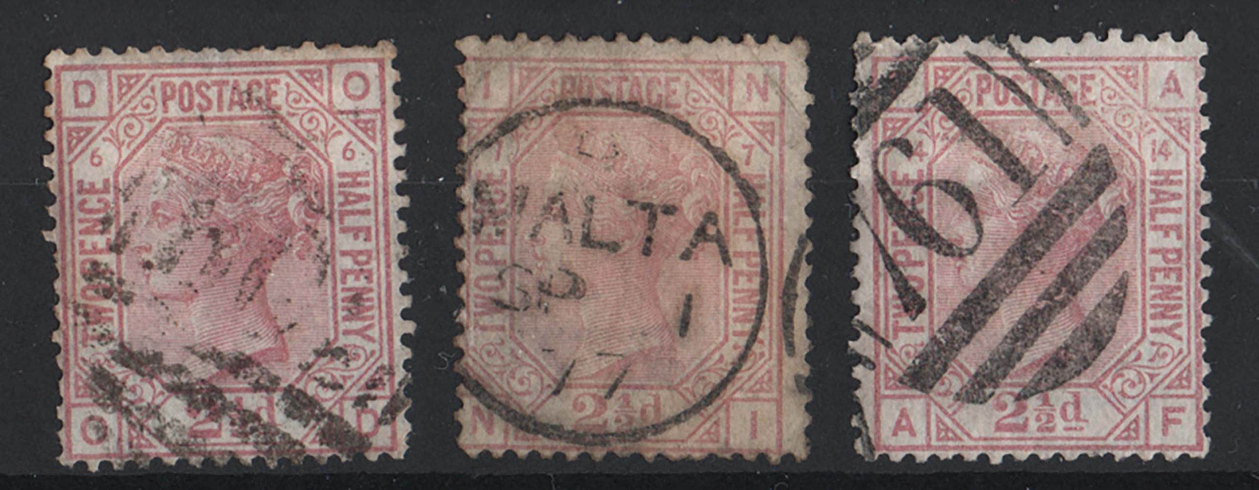 GB 1873 2½d rosy-mauve plates 6, 7, 14 vgu sg141 c£255