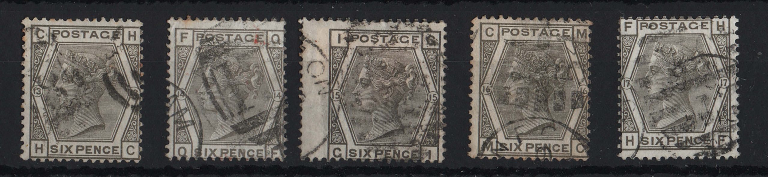 GB 1873 6d grey plates 13-17 fu sg147 c£540