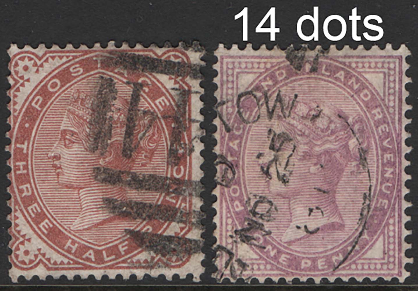 GB 1880 1½d Venetian red fine used, clear profile sg167 also 1881 1d lilac 14 dots very fine used cat £105 [ref 288/sa/ac0008] Victoria Surface-Printed Issues