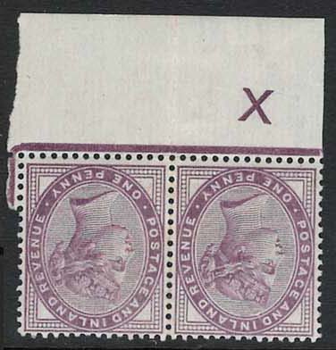 GB 1881 1d lilac marginal X inverted control pair, stamps um c£200 as mm [ref 2743035/sa/6c0203]