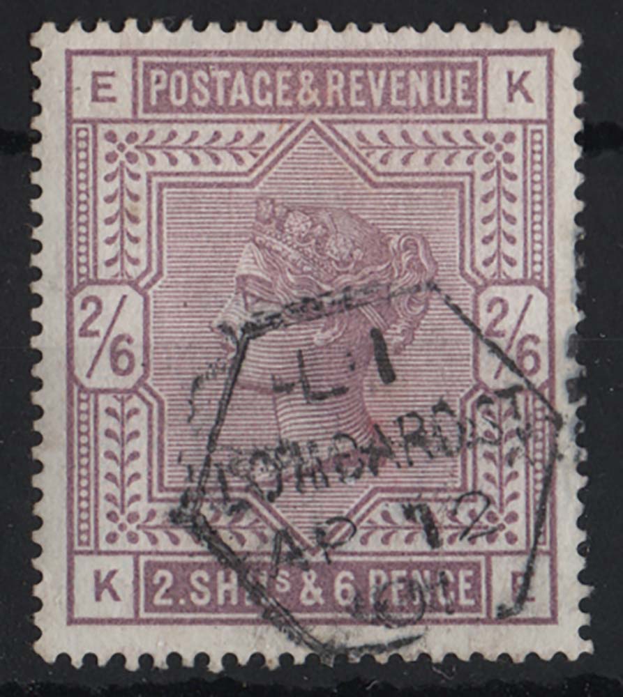 GB 1883 2/6d lilac sg178 vfu, neat hexagonal late fee c£160 [ref 287a/sa/9y0222]