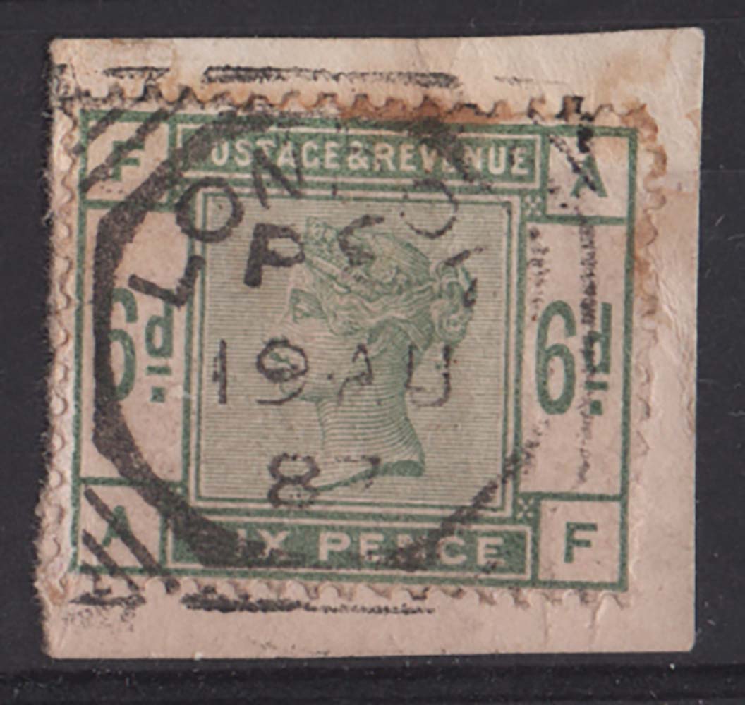 GB 1883 6d green vgu on piece, true colour sg194 a little foxing to top perfs c£240 [ref 287bb785/sae/9o0150]