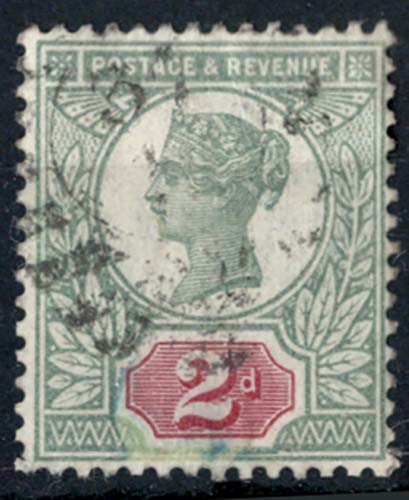GB 1887 2d green & scarlet good used, clearly scarlet shade, green small water affected area sg199 cat £260 [ref: 292/331 saE/9c1137]