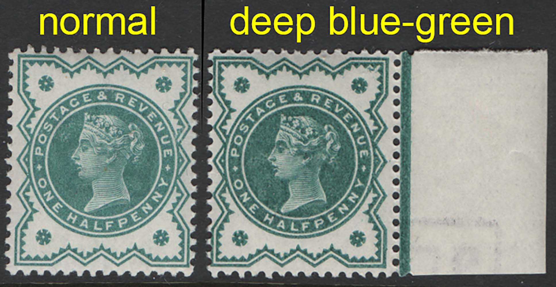 GB 1900 ½d very deep blue-green um sg213var (scarce Hendon shade £95) + normal for comparison