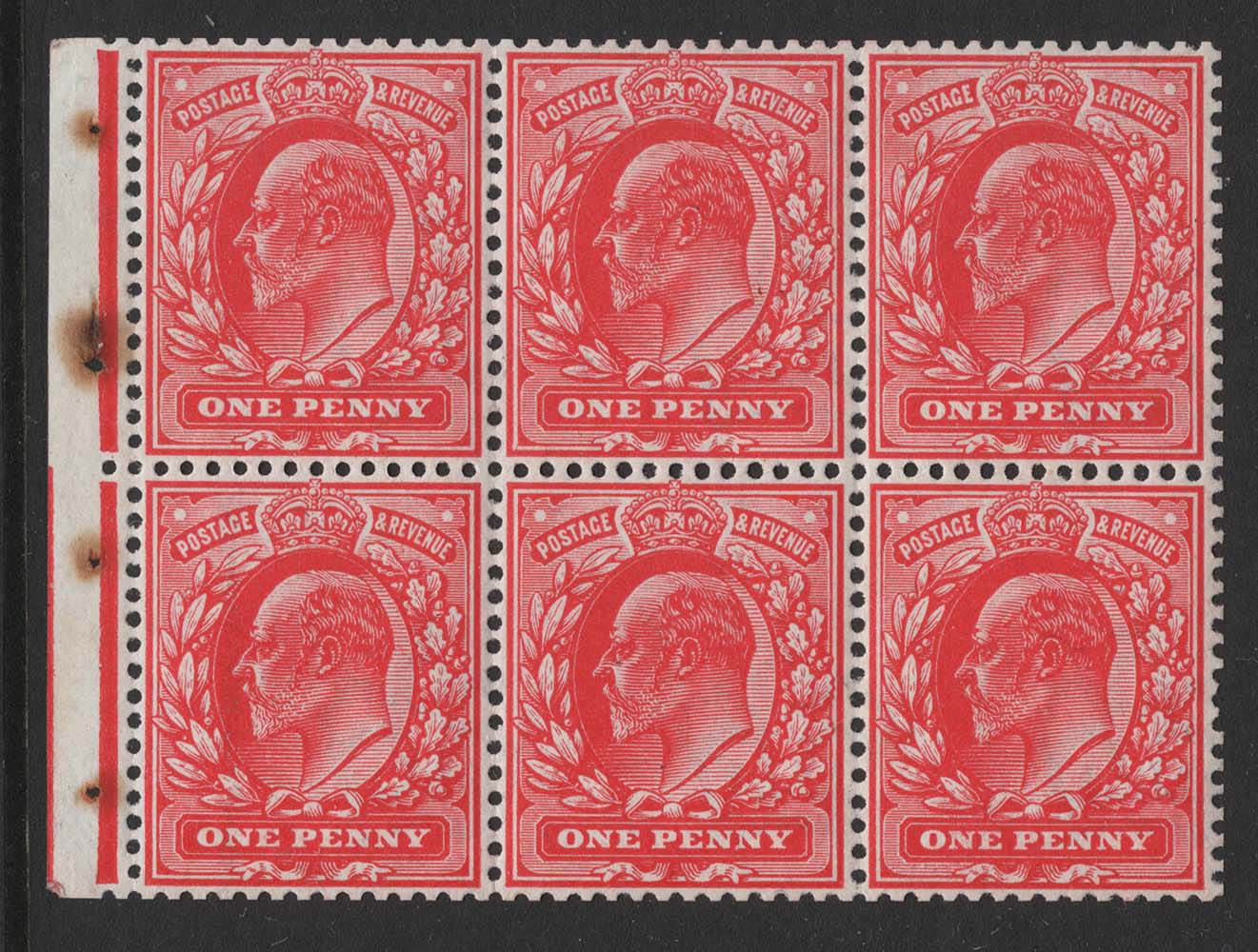 GB 1902 1d sg219 fine unmounted mint watermark upright booklet pane of 6 full perfs, perf E, staple rust as usual cat £250 [ref 288/sa/ac0120] King Edward VII