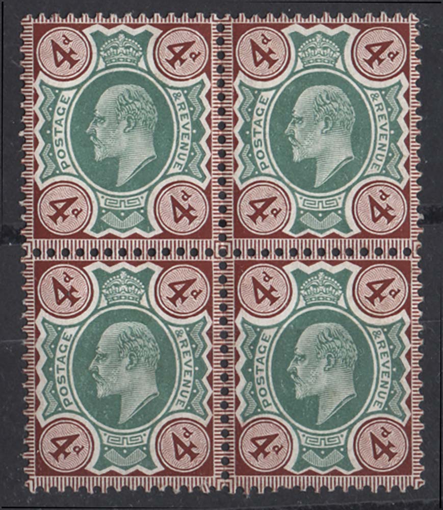 GB 1902 4d green & chocolate-brown sg236 fresh um blk of 4 c£500++