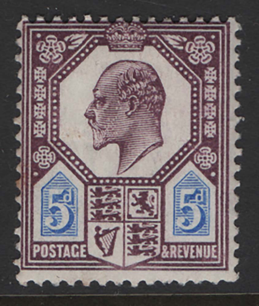 GB 1902 5d deep slate-purple & ultramarine chalky paper, couple gum fox spots otherwise very fine mint sg244var, Hendon shade [ref 288/sa/ac0798] King Edward VII