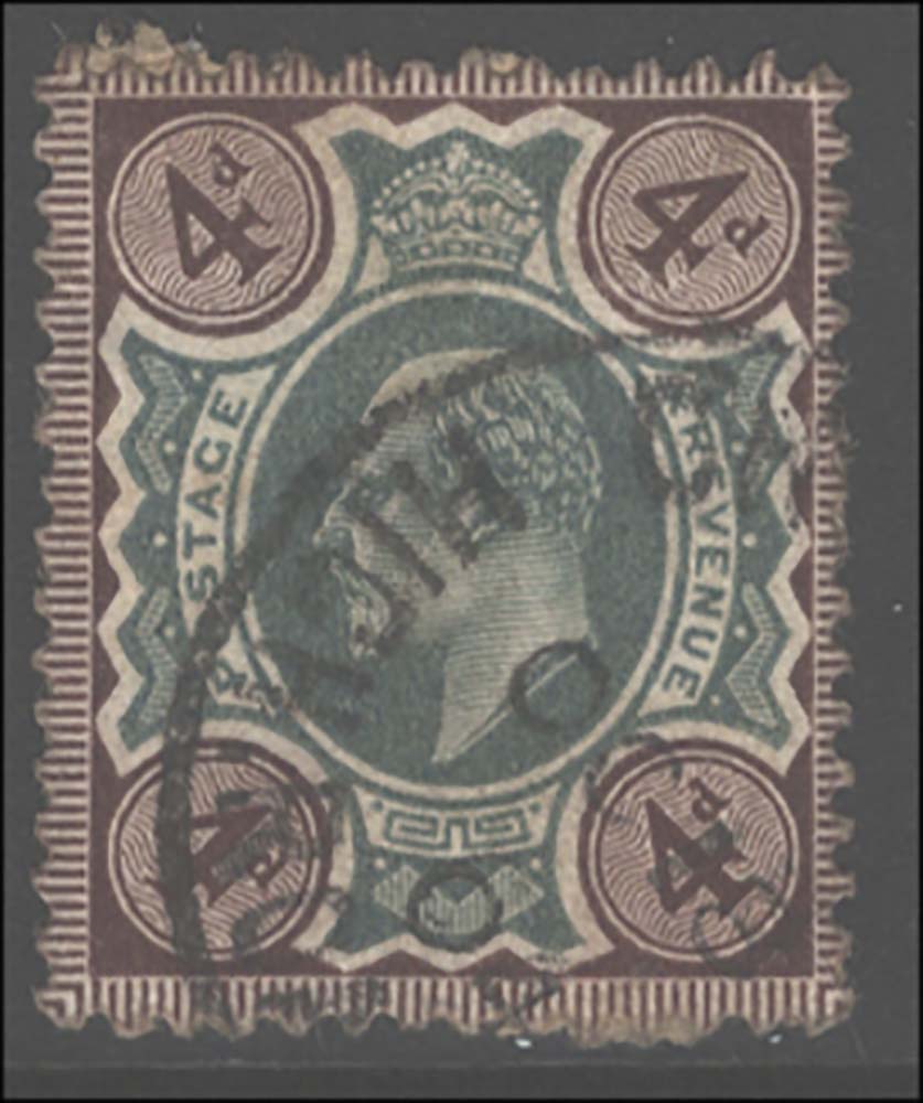 GB 1902 KEVII 4d dark green & chocolate-brown very fine used sg236var, still partly on piece, Hendon shade [ref ebay/1250-a55 e4487] 291/#420