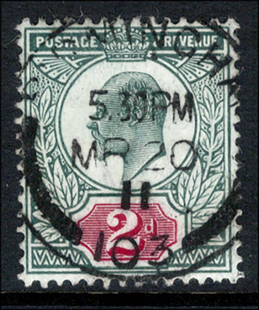 GB 1906 KEVII 2d deep blue-green & carmine-red chalky paper fine used cds – a Hendon shade not in SG [ref ebay/1247-a55 e4473] 291/#415