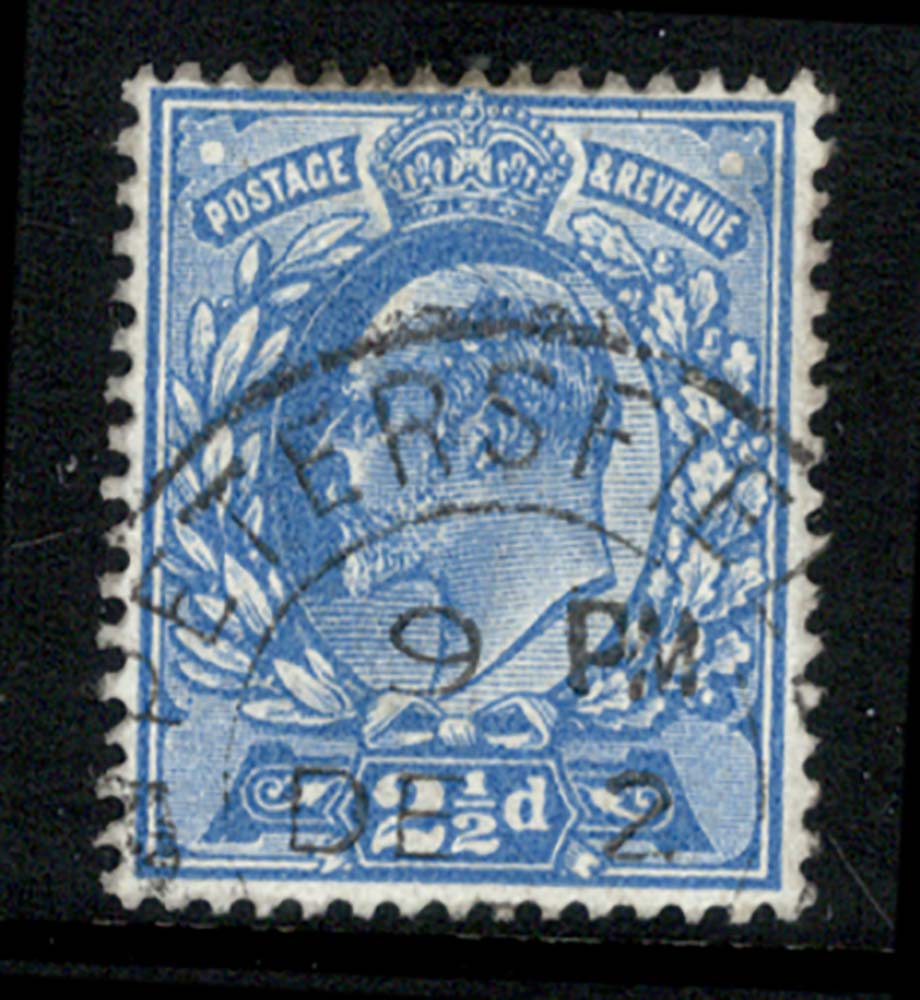 GB 1911 KEVII 2½d perf 15×14 true blue very fine used cds sg284var – Hendon list