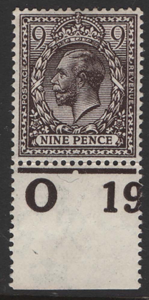 GB 1912 9d agate sg392 vf mint O19(P) single c£25 [ref 286479/sa/aa0636]