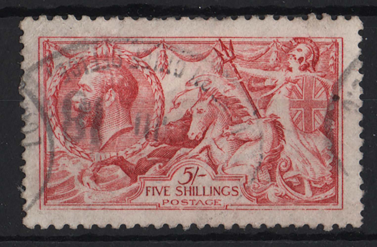 GB 1915 De La Rue 5s pale carmine seahorse sg410 fu, odd nibbled perf c£500
